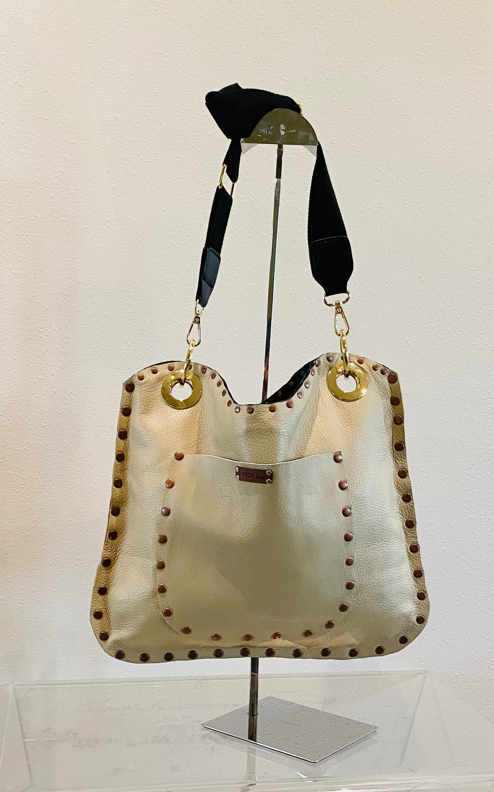 Beautiful, lime, green for bag with fur accented calico fur front . Clean gorgeous cream, Italian leather backing. This 12 x 14 bag comes with shoulder strap. This bag is fully lined with a pocket.